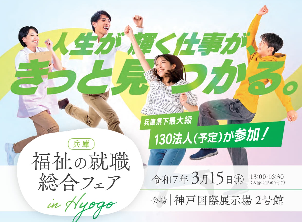 福祉の仕事に関心のある若者らを対象にした「福祉の就職総合フェア in Hyogo」が、3月に神戸市内で開催されます。兵庫県社会福祉協議会の福祉人材センターによる主催。