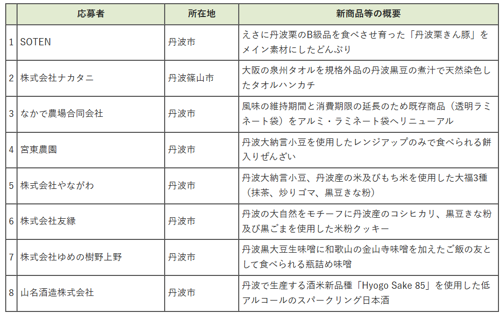 【兵庫丹波ブランド農産物新商品開発応援事業】