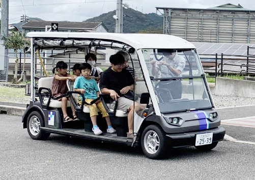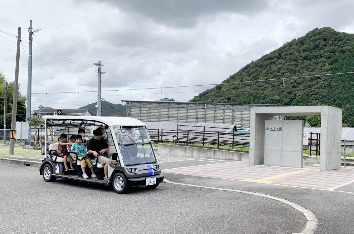 時速20キロ未満で公道を走ることができる電動車による移動サービス(グリーンスローモビリティ、通称グリスロ)が、丹波地域で8月30日からスタートしました。「ぐるっと恐竜ライド」と銘打ち、JR久下村駅~たんば恐竜博物館、谷川駅~たんば恐竜博物館の区間を土日祝日限定で10月13日(月・祝)まで定期運行しています。電車のダイヤに合わせて1日5~7便運行し、久下村駅発は定員3人(所要時間約4分)、谷川駅発は定員6人(所要時間約10分)。いずれも無料ですが、下記の専用サイトから事前予約した人が優先となります。