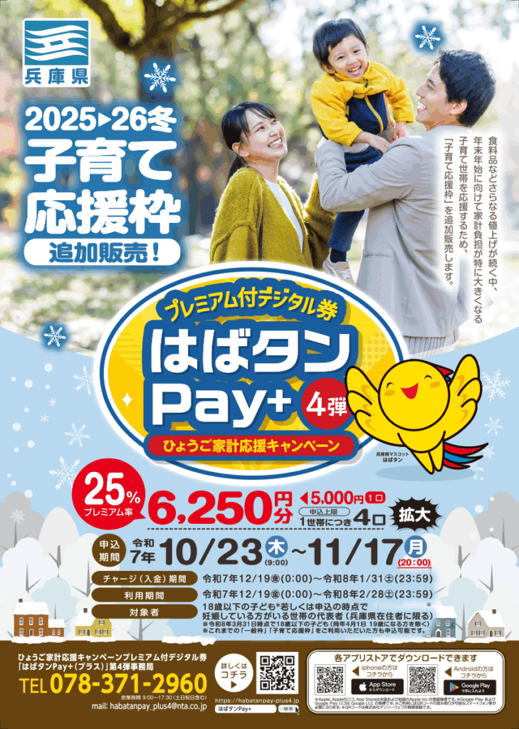 【公式】はばタンPay+(プラス)第4弾 | ひょうご家計応援キャンペーン プレミアム付デジタル券|はばたんペイ はばタンペイ