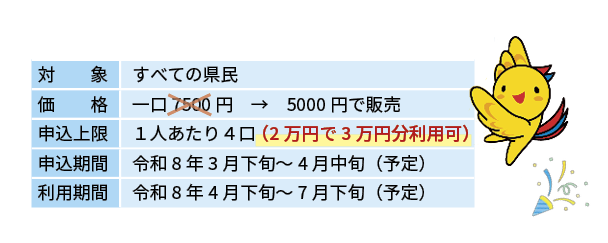 スマホ決済のデジタル券で、今回のプレミアム率は50%とし、一口7500円を5000円で販売。最大4口まで購入でき、計2万円分を買うと3万円分が使える仕組みです。