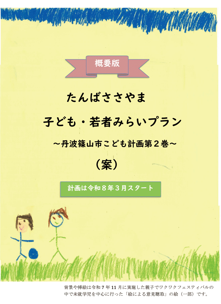 子どもたちが安心して、幸せに育つにはどんな環境づくりが必要なのか? 丹波篠山市は、子どものための環境づくり方針となる「たんばささやま子ども・若者みらいプラン」案を取りまとめました。策定を前に、パブリックコメントを募集しています。