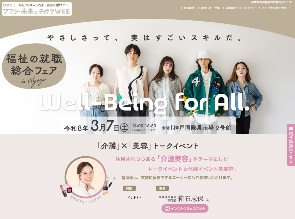 令和8年3月7日(土)開催、兵庫県の福祉の就職総合フェア。学生・経験者・未経験も歓迎!福祉の現場で働く先輩から、仕事内容や職場のリアルな声を直接聞けます。